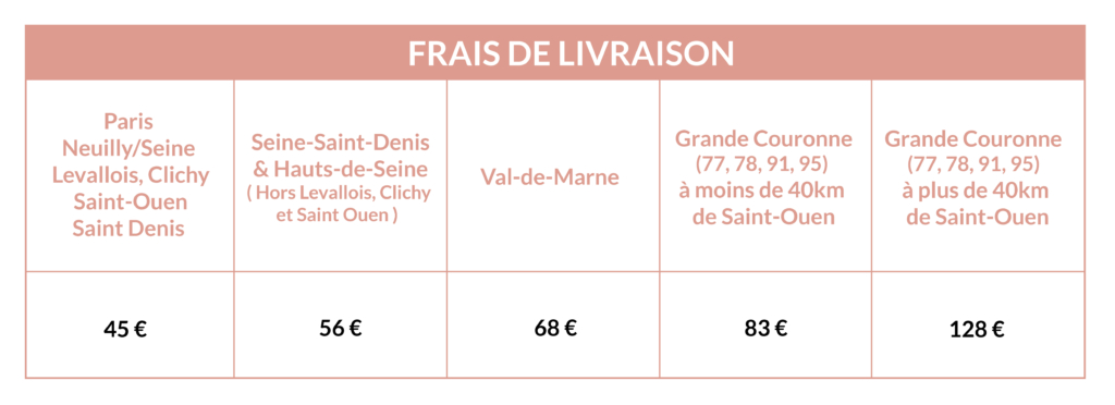 Nous vous livrons dans un créneau de 2h du lundi au vendredi de 8h à 17h et le samedi de 8h à 12h